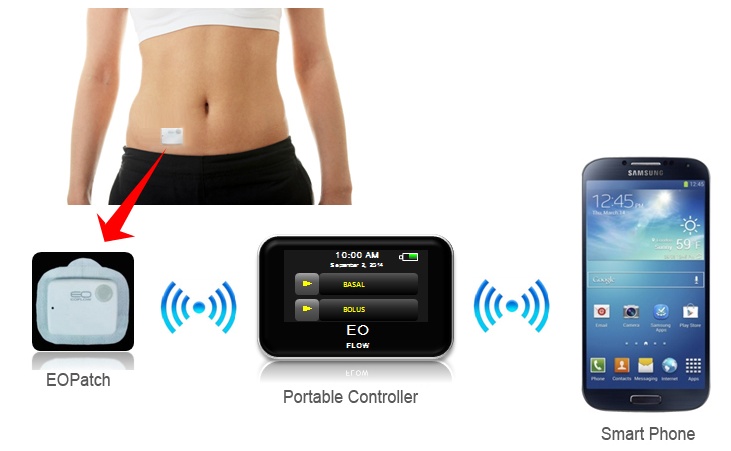 이오플로우는 지난 3년 간 전기삼투펌프 기술을 이용하여 타 업체가 경쟁하기 어려운 수준의 소형, 저전력, 저가형 약물 주입기를 개발하고 있다. 이오패치로 명명된 일회용 부착용 펌프의 핵심기술은 특허출원중인 가스발생이 없는 자체전기 전기삼투펌프(electroosmotic pump)다.