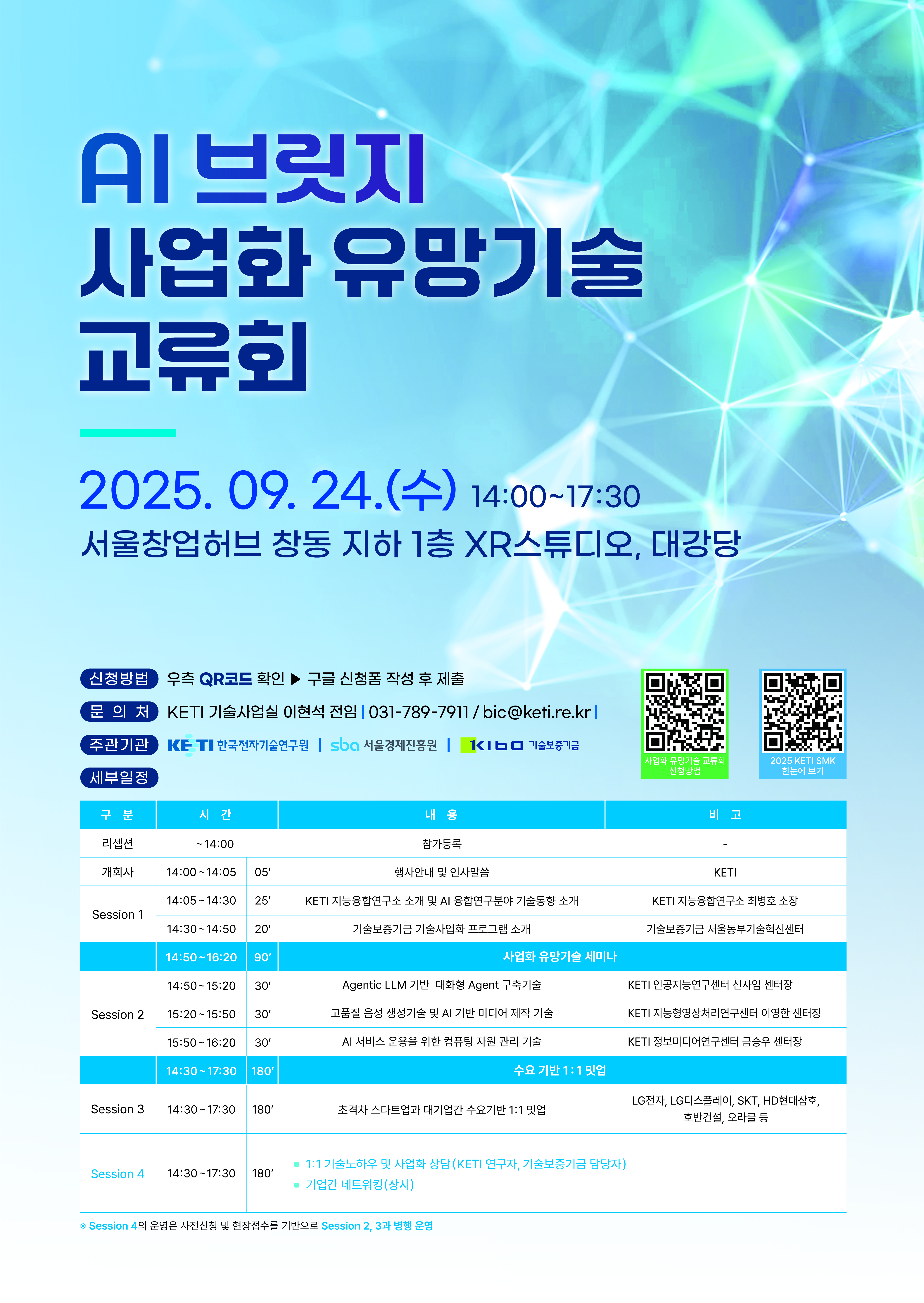 AI 브릿지 사업화 유망기술 교류회가 개최됩니다.