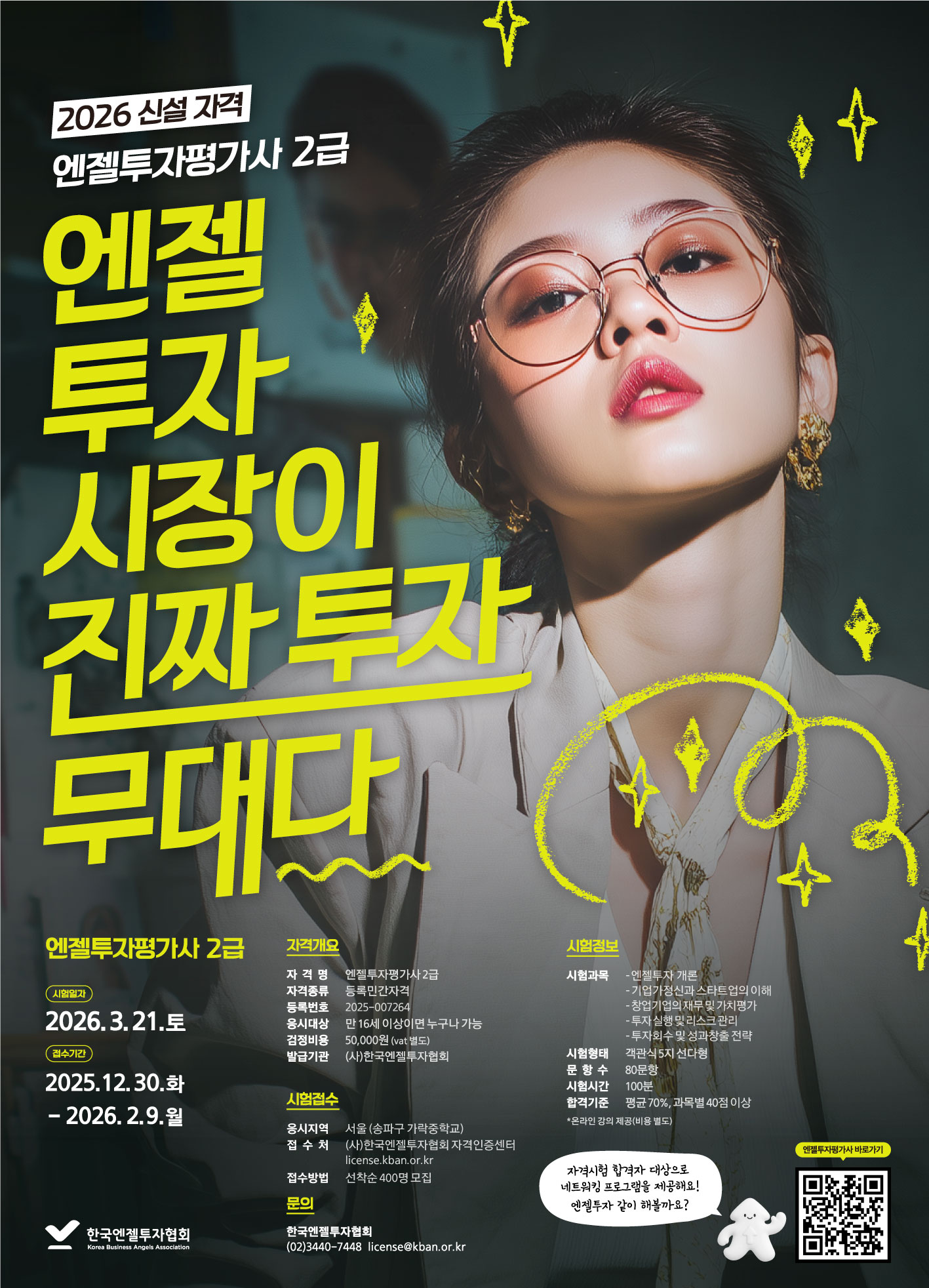 2026년에 신설된, 엔젤투자평가사 2급 자격시험 응시자를 모집합니다!